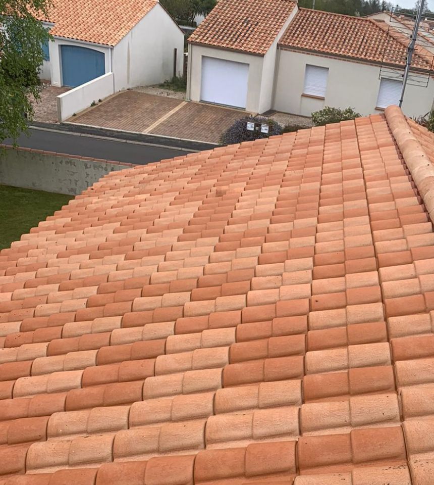 Élimination des mousses, lichens et autres impuretés pour retrouver une toiture propre et saine.