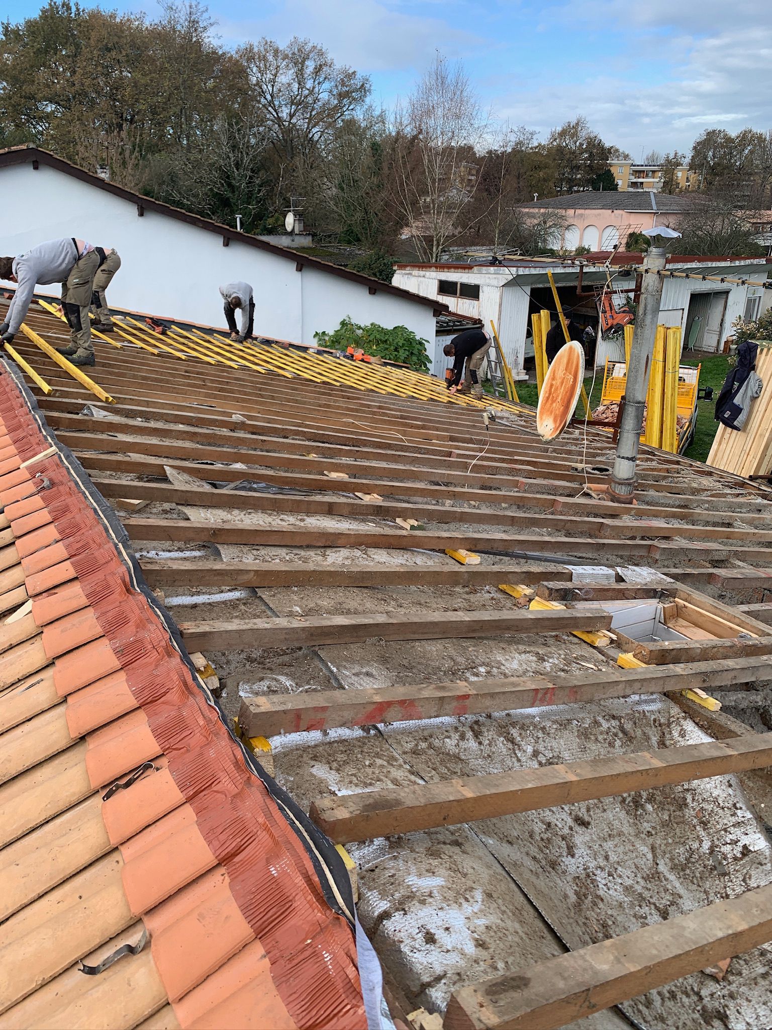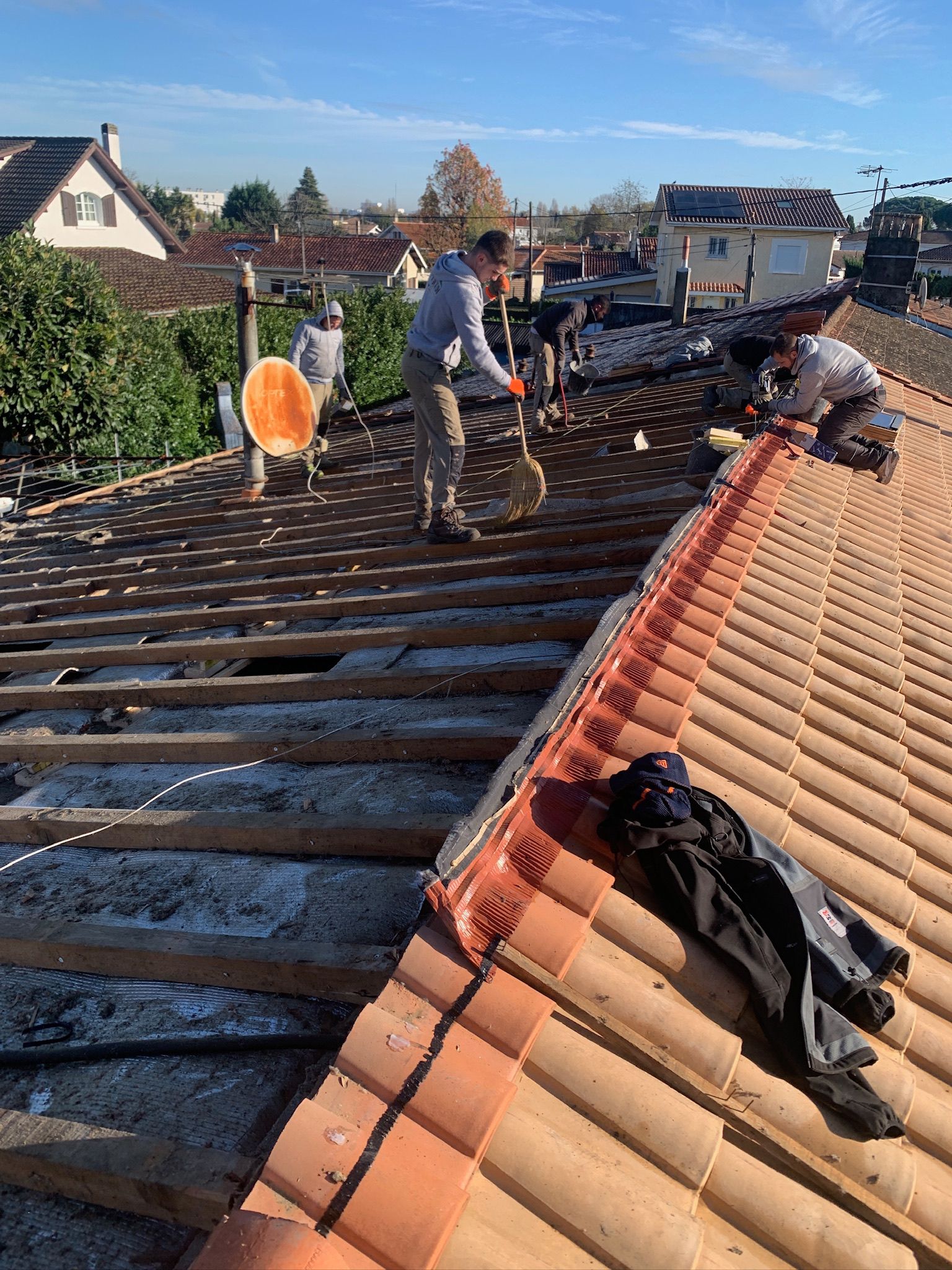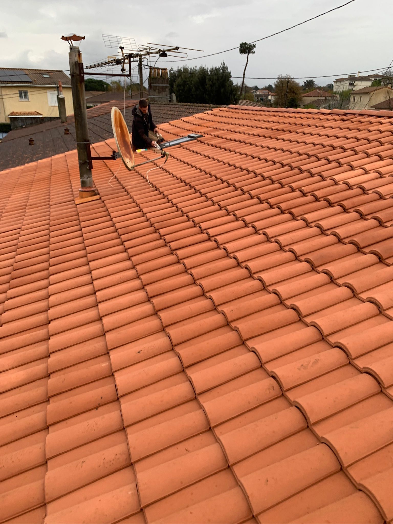Pour ce chantier, nous sommes intervenus à Villenave-d’Ornon afin de remettre complètement en état une toiture qui présentait des signes d’usure avancée. Le remaniement complet des tuiles et la rénovation du faîtage ont permis de sécuriser l’ensemble de la couverture tout en améliorant son esthétique. Ce travail soigné assure désormais une meilleure étanchéité, une longévité renforcée et une toiture parfaitement fiable pour les années à venir.